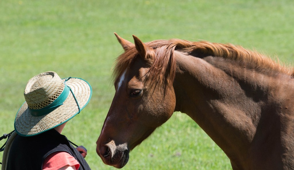 Horses have heightened senses. They are far more perceptive than us. They can tell by the way we walk or hold our bodies where our body aches. They can tell how fast we can run and how quickly they can get away from us. They are hardwired to make these assessments. They are prey animals, and we are the ultimate predator. They instinctively read predators so they don’t end up on the menu. They know our mood from our eyes and can feel our energy from the moment they see us arrive at their paddock. They read our intent long before we are even aware of it ourselves. Some of the benefits for humans are when we are near horses they regulate our heartbeat and increase our sense of well-being, among other things.